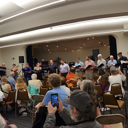 Community room filled with a teacher workshop.