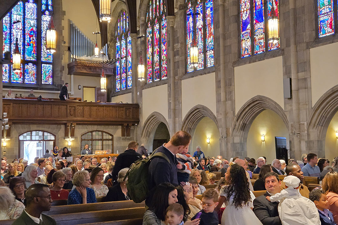 The worship bulletin is available as you enter the sanctuary, and includes helpful information as well as this Sunday’s order of service, scripture, prayers, and musical selections. Worship bulletins are also available online here. Greeters are at the front doors and Commons doors to welcome you, give you a worship bulletin, and offer the opportunity to make a name tag. (Don’t worry, you don’t have to.)